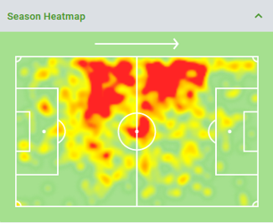 The 21-year old marauding wing-back has impressed so far this season at Forest Green Rovers (1st in League Two), making a total of 21 appearances, scoring 2 goals and providing 9 assists. Used primarily on the right side of a 3-5-2 wing-back system, Wilson is no stranger to putting in a shift (see his heatmap below), showcasing excellent stamina and endurance.