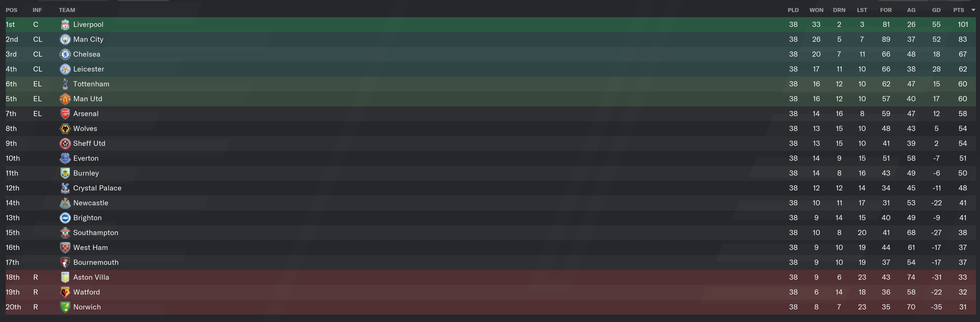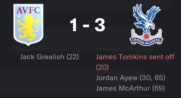 … and Palace fell short. This meant that relegation was confirmed. The final table looked as it does below: