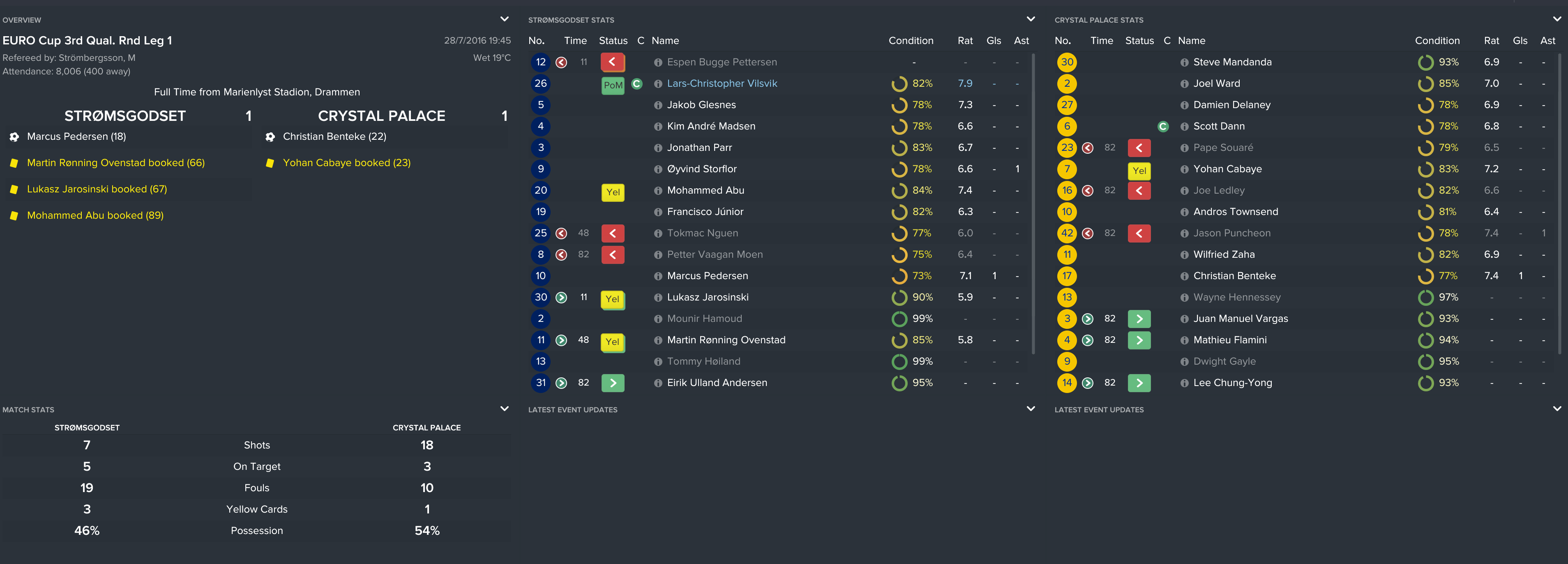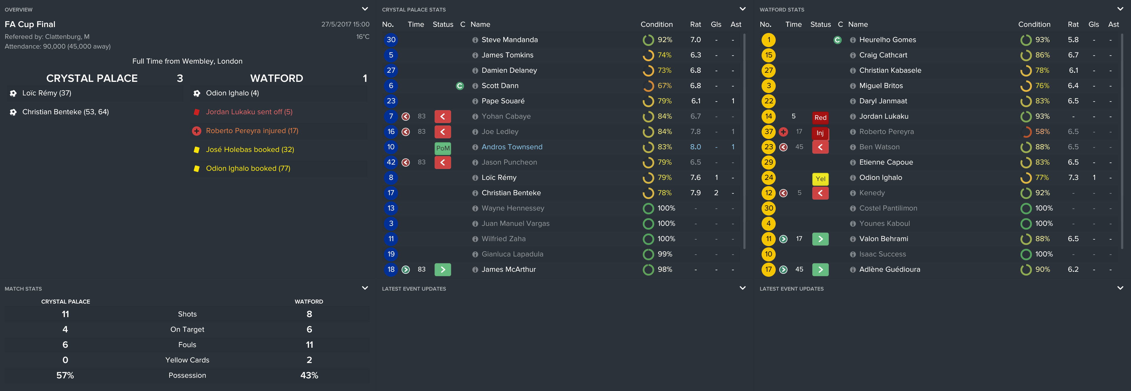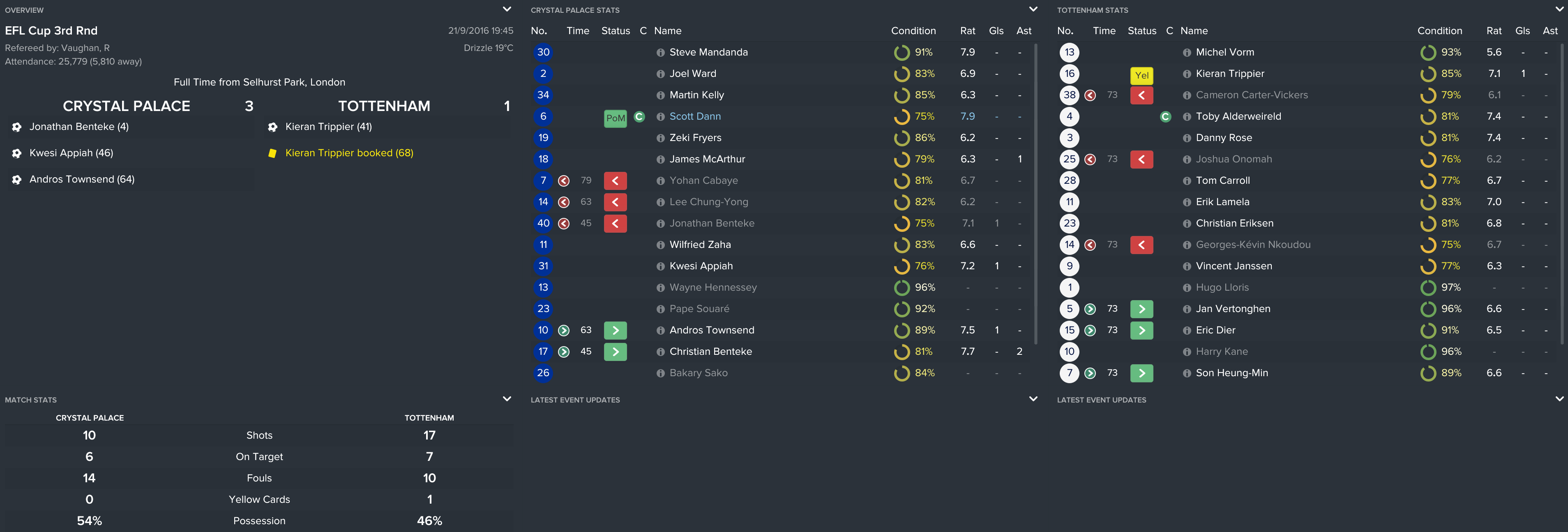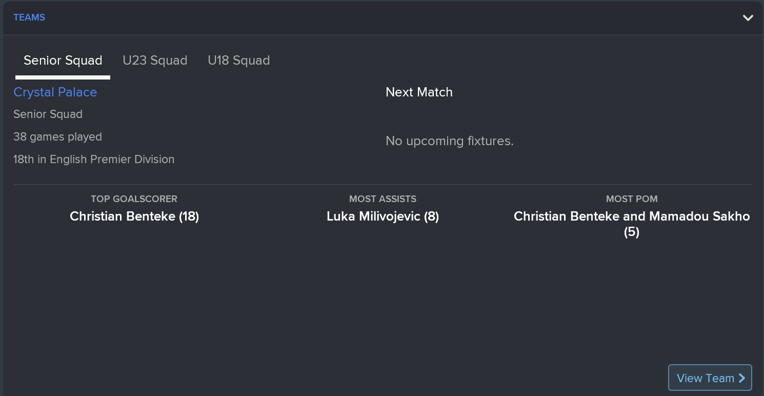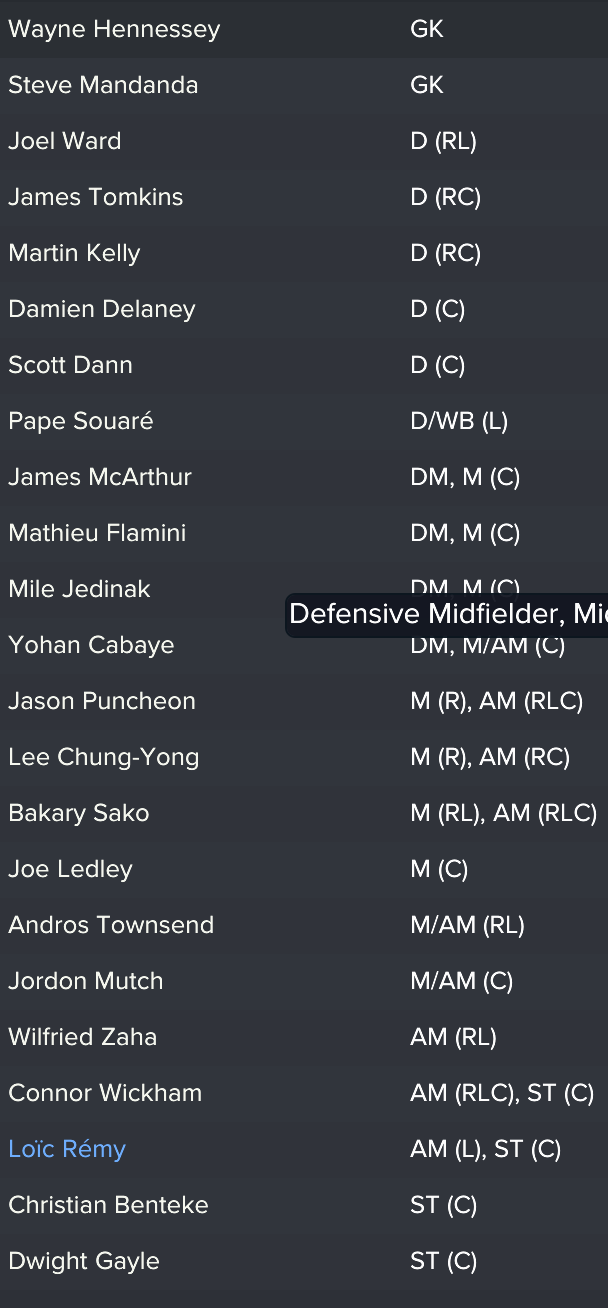 I kept the squad together from the FA Cup final except Yannick Bolasie’s move to Everton (mainly because I forgot). However, this meant that we used the money to sign Andros, Benteke and Tomkins and kept it as believable as possible.