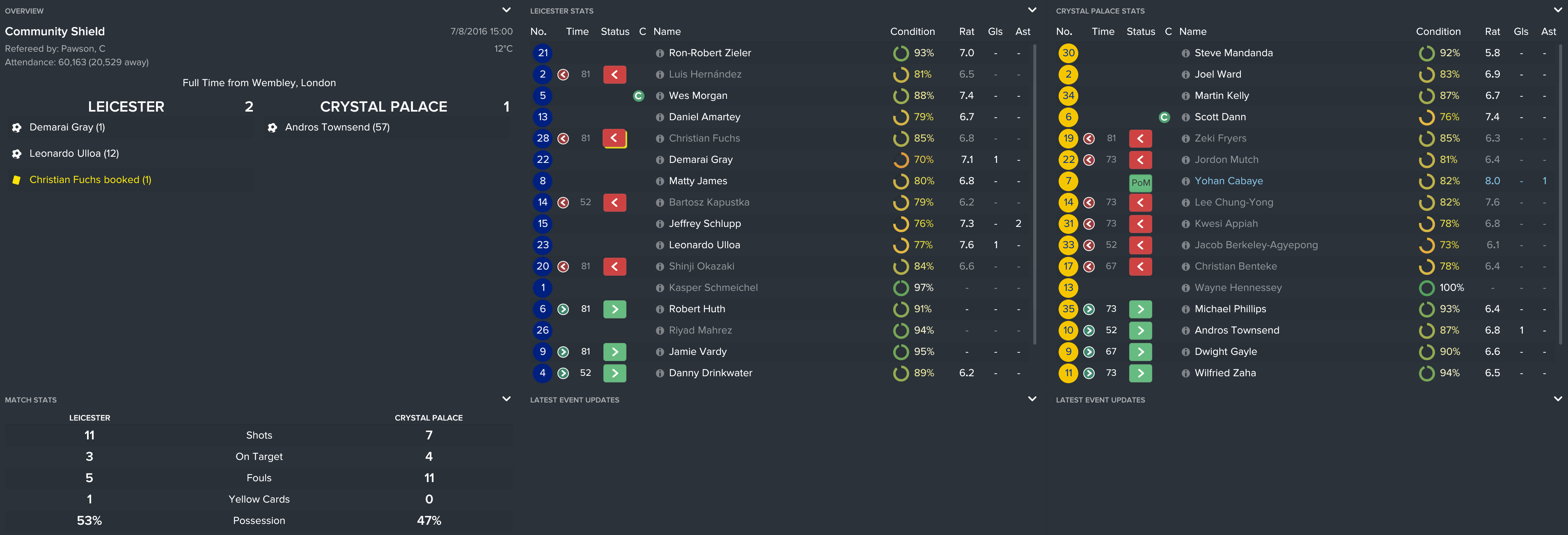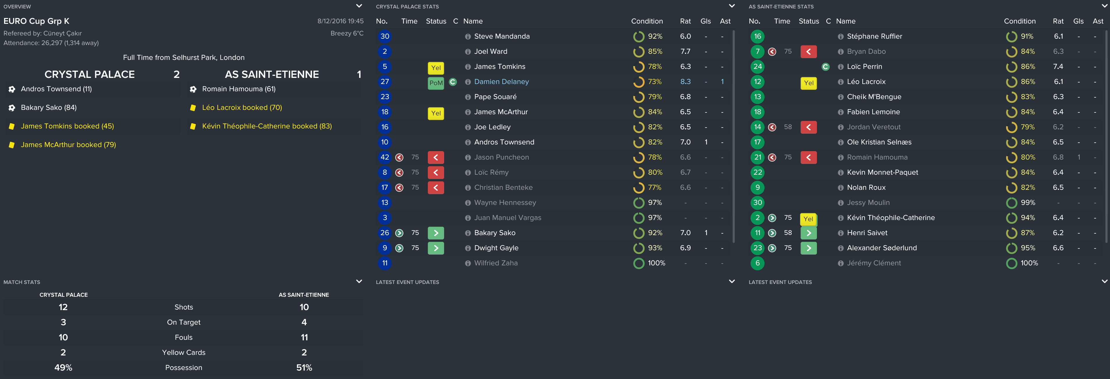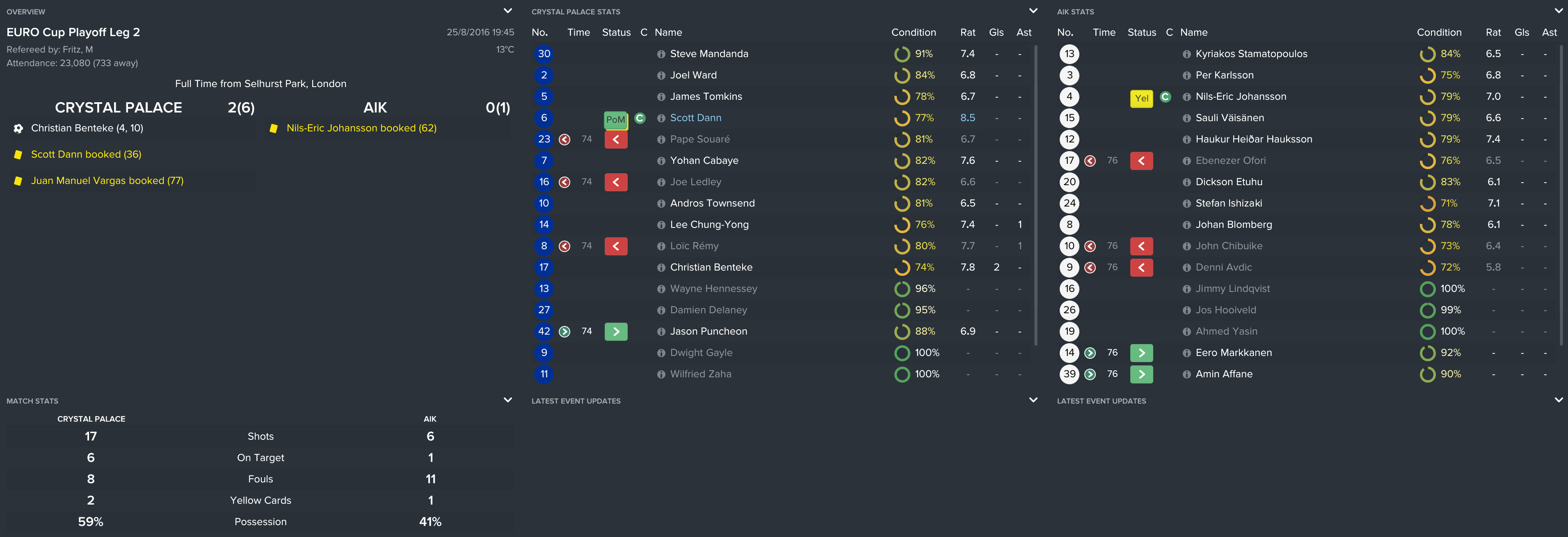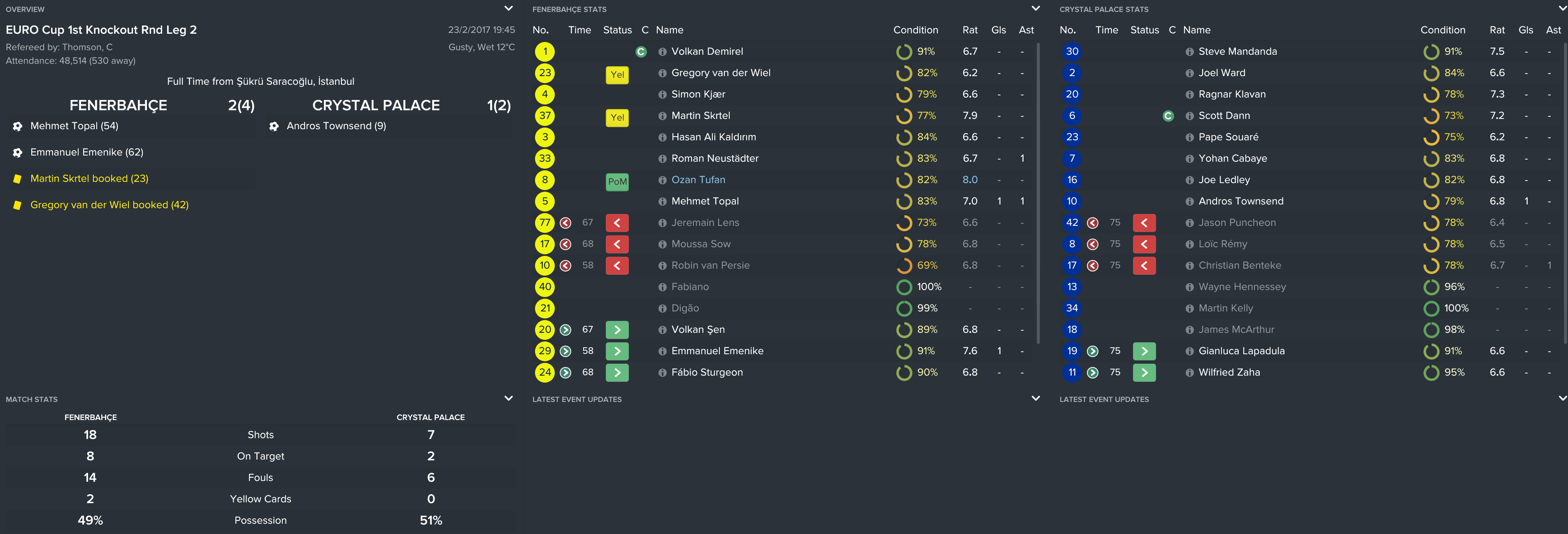 I kept the squad together from the FA Cup final except Yannick Bolasie’s move to Everton (mainly because I forgot). However, this meant that we used the money to sign Andros, Benteke and Tomkins and kept it as believable as possible.