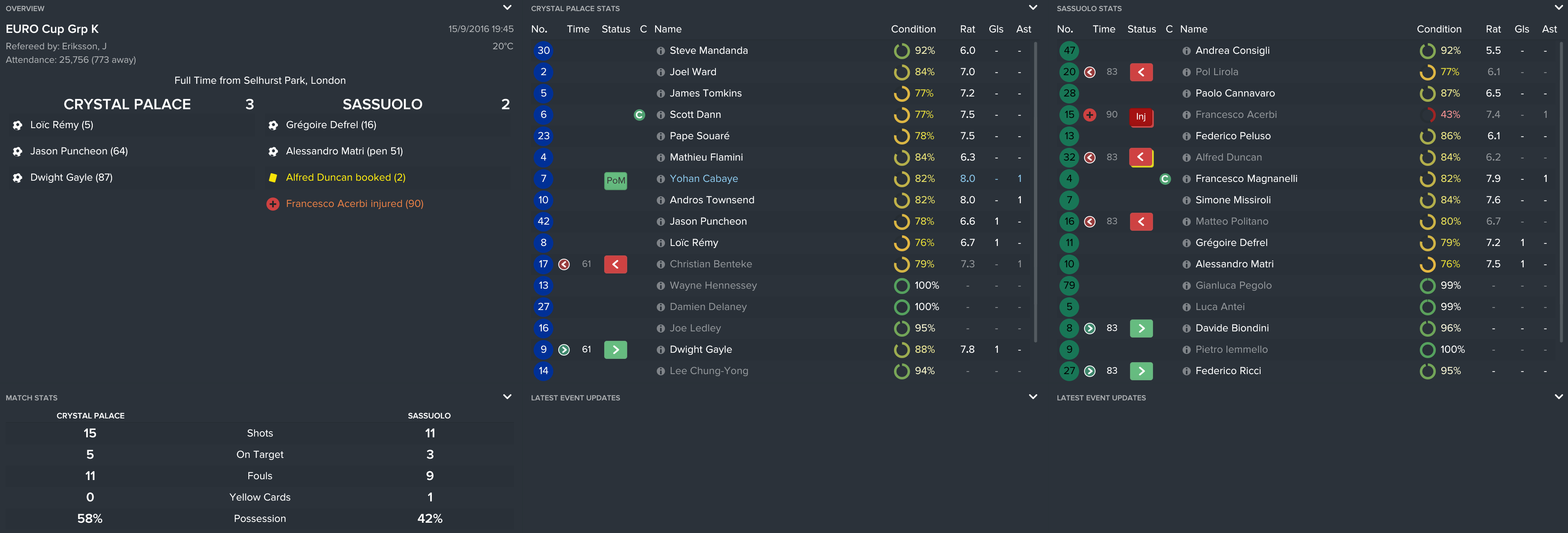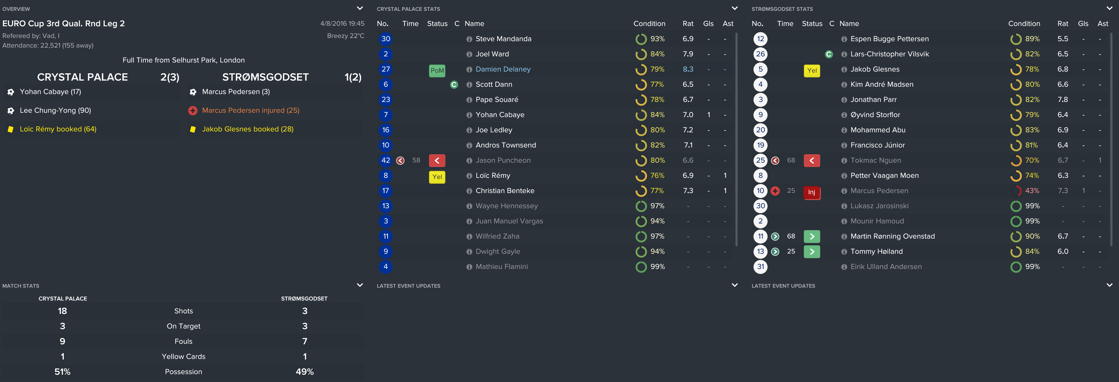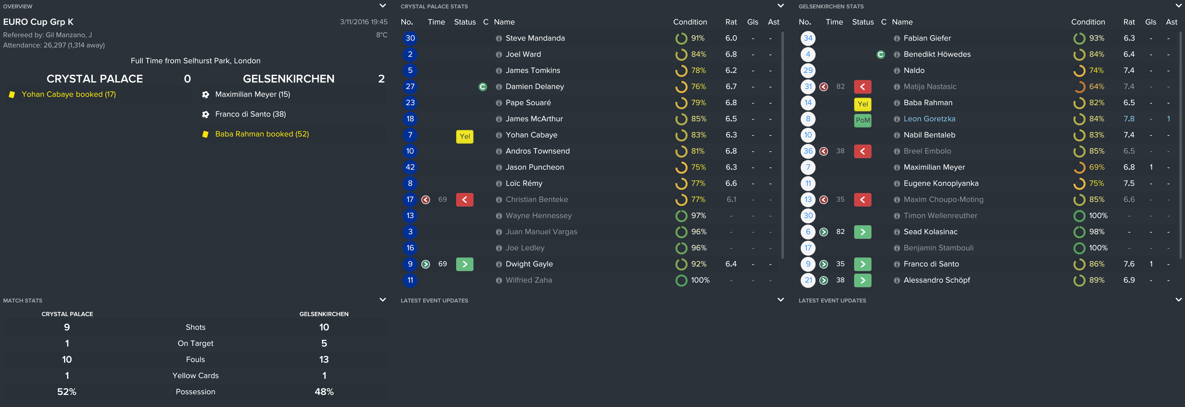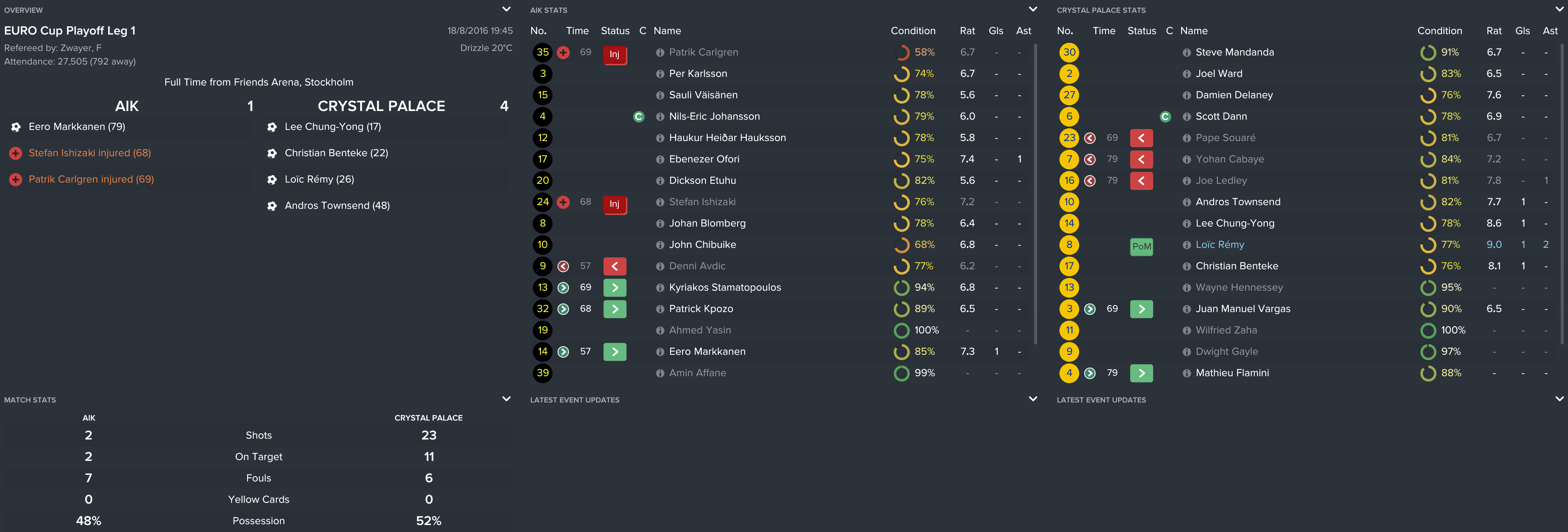 I kept the squad together from the FA Cup final except Yannick Bolasie’s move to Everton (mainly because I forgot). However, this meant that we used the money to sign Andros, Benteke and Tomkins and kept it as believable as possible.