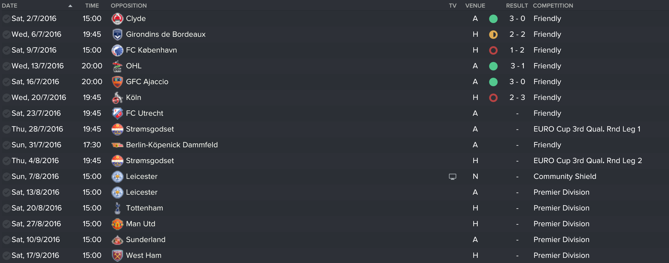 I went month by month and captured the important games. Here’s the fixture list for the first couple of months: