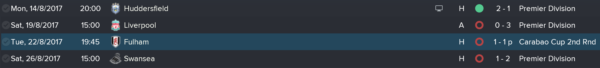 Decent start to the season with 4 points in the 1st 3 league games but a 1-1 draw with Fulham led to penalties which we unfortunately lost. Who cares right? it’s only a winnable trophy… ?