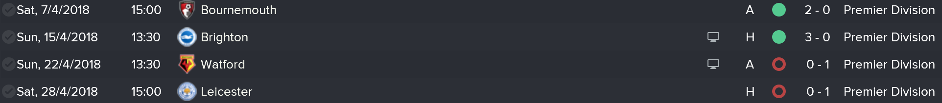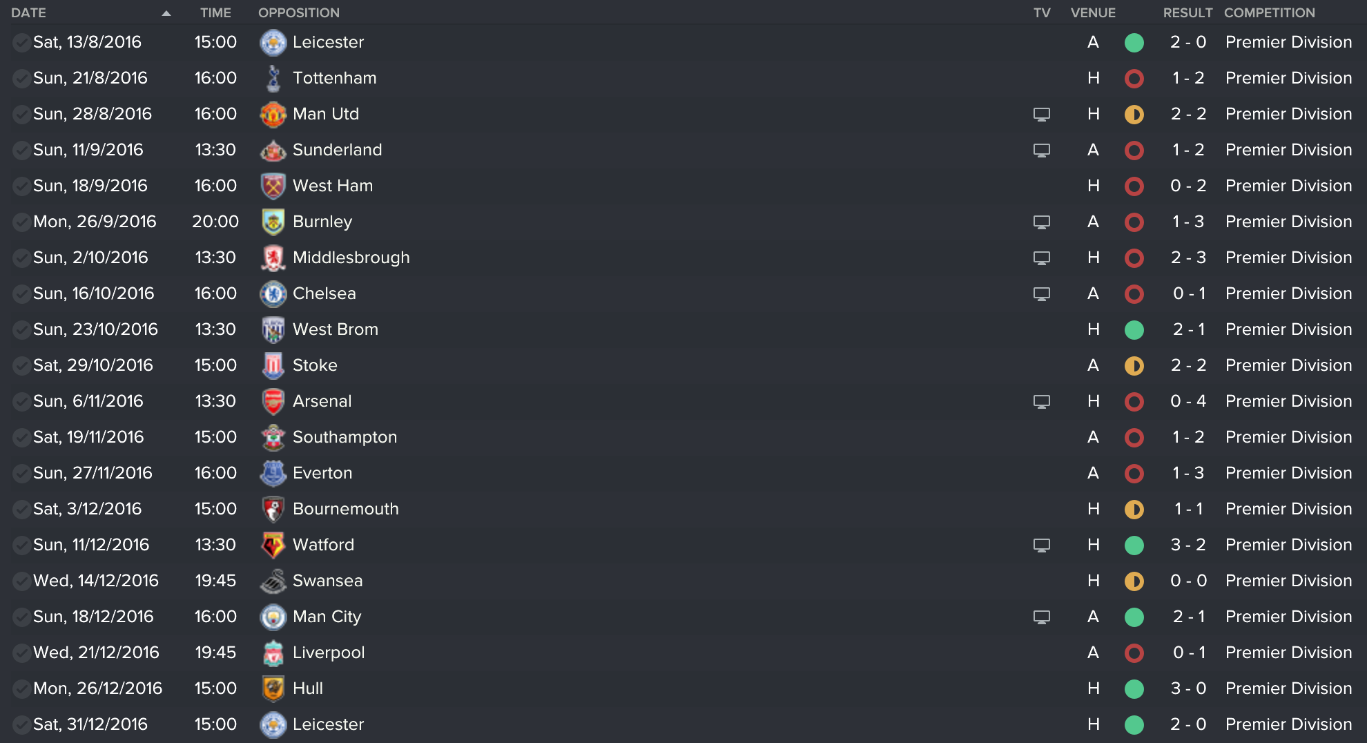 Monday, 28th: Leicester City (H)