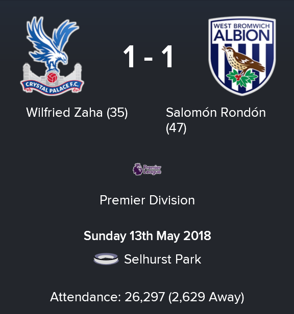 So a final finish of 12th and 48 points, one fewer than last season and just missing out on that elusive 50-point mark, which would have been a Premier League record for Palace. Ho hum.