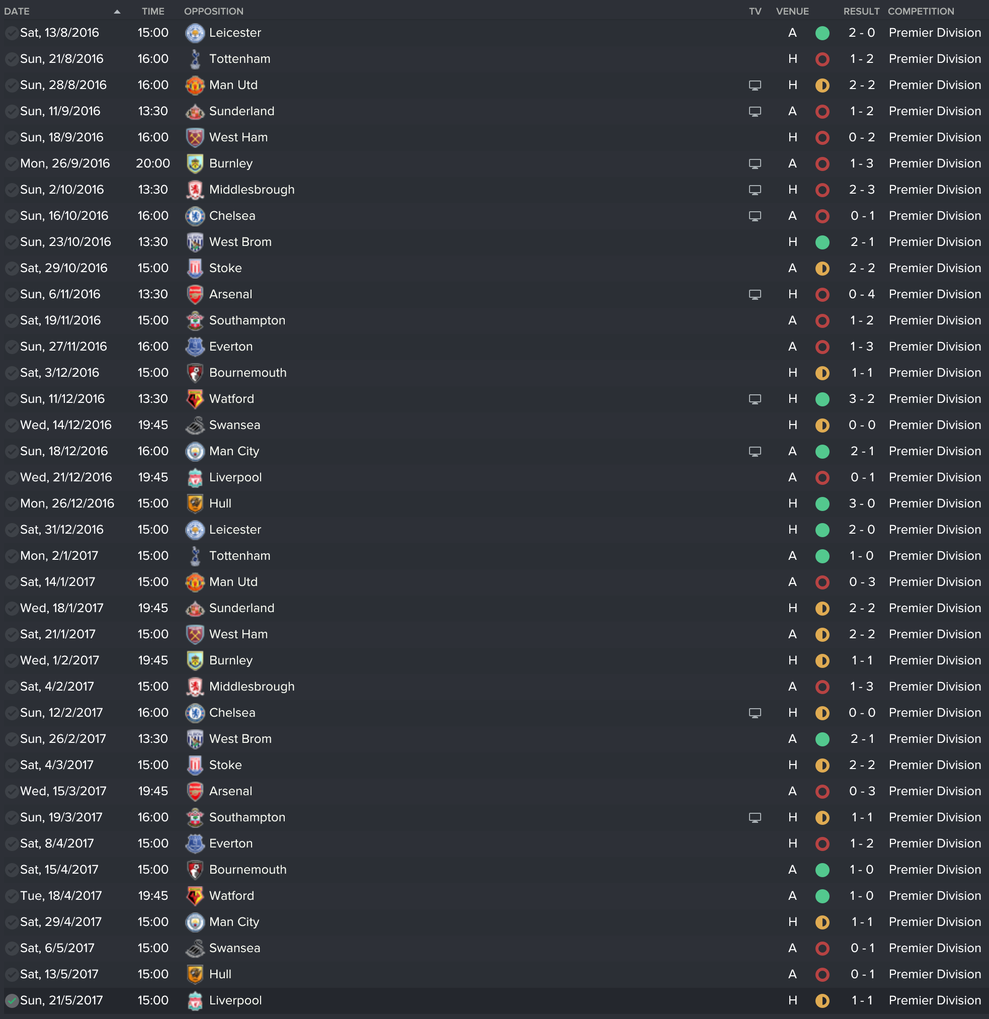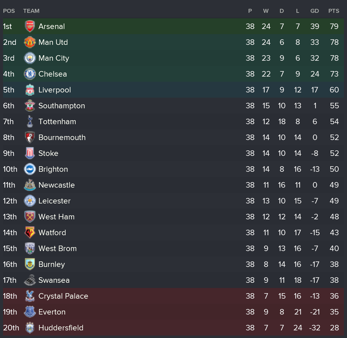 The goal of this experiment was to see how things would’ve gone if Frank had been given more time. Sadly, I was not able to start the experiment after the real life 1-0 loss to Burnley that sealed Frank’s fate in real life so I ran this experiment from 14th August 2017, the 1st game of the season at home to Huddersfield *Shudders at the memory of that game…*