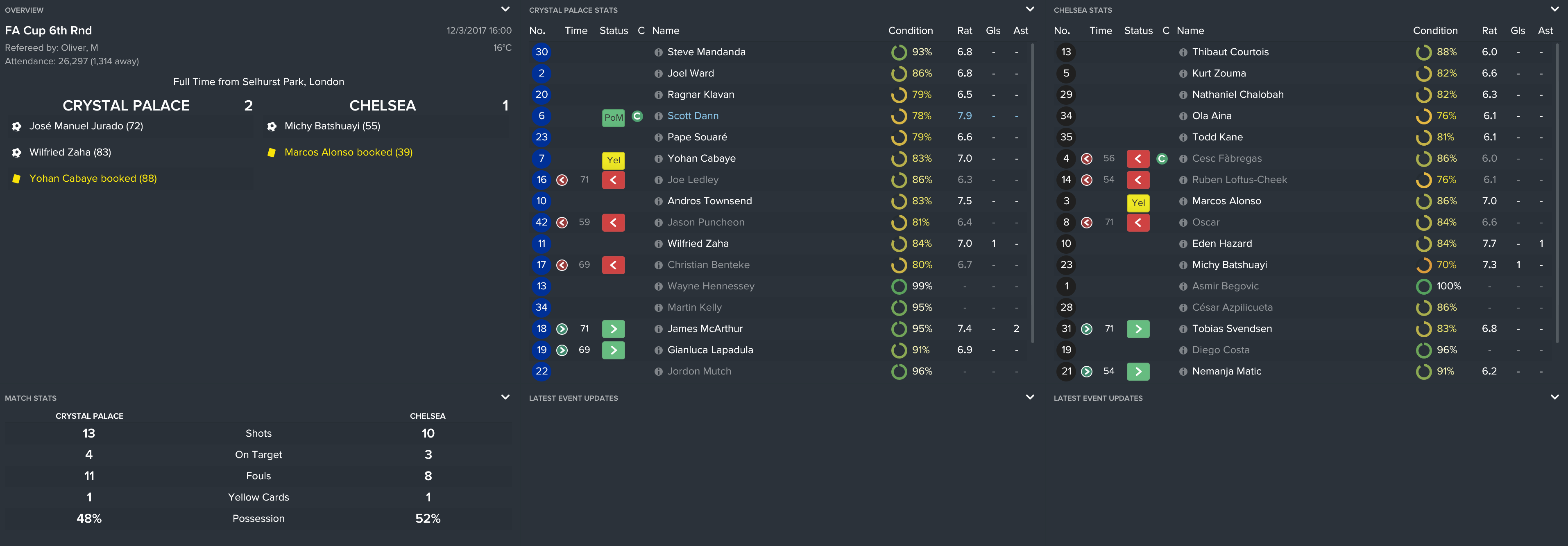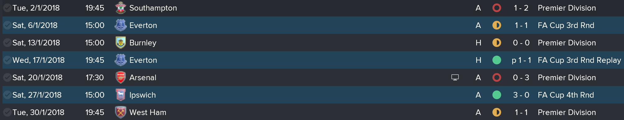 The busy December calendar provided some entertaining games but with only a 2-0 win at Watford (goals from Cabaye & Loftus-Cheek) to speak of, the half way point of the season was slightly concerning.