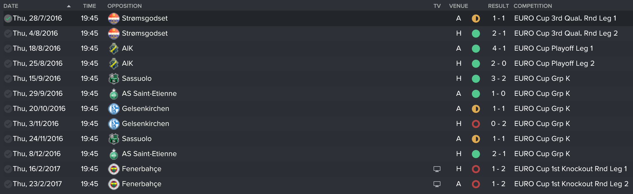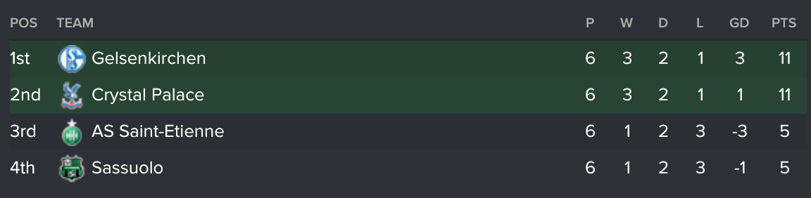 After these victories, we progressed to the group stages of the Europa League. Our group was below: