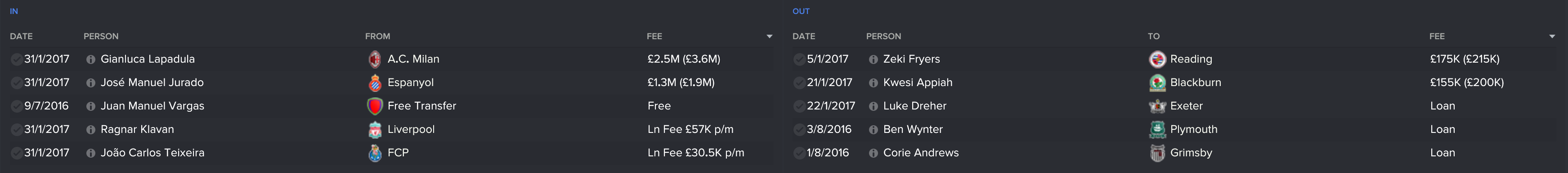The transfer window arrived with Frank wanted to shake things up in the squad and he got his wish with a net spend of -£5m.