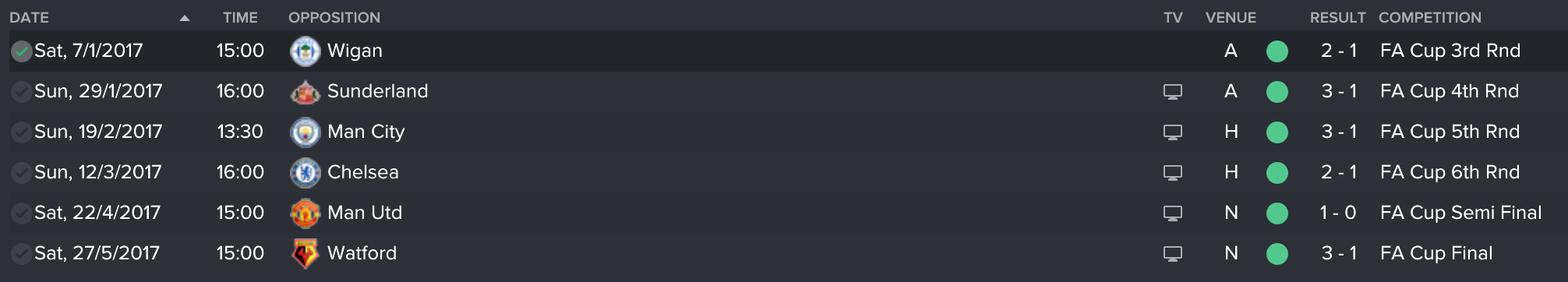 So a mid-table finish, a run to the Europa League knockouts but more importantly, ANOTHER FA CUP WIN! TWO IN A ROW, BABY!