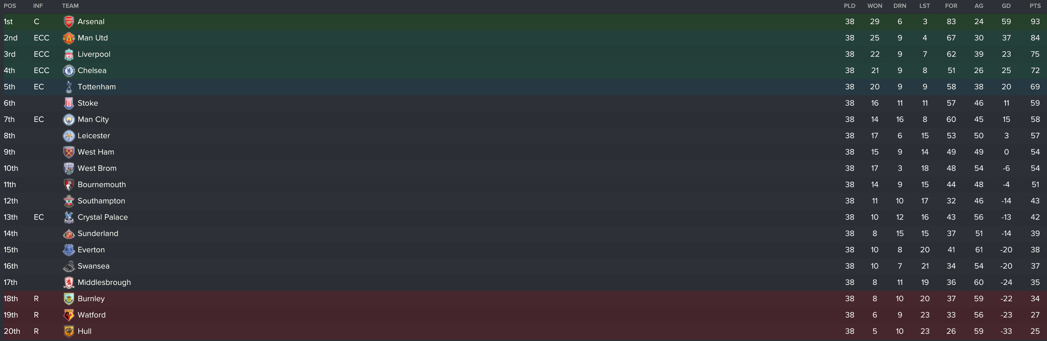 Man City, Chelsea & Leicester qualified for the Champions League and Man Utd, Spurs and Arsenal qualified for the Europa League
